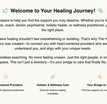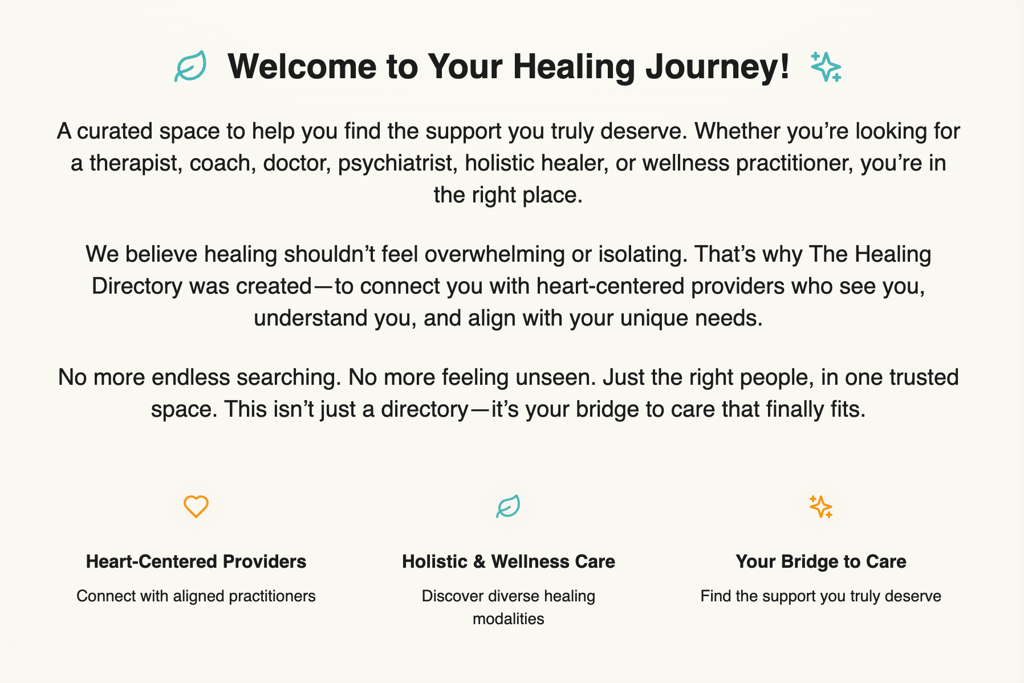 We’re accepting early providers now! If you’re a therapist, coach, bodyworker, yoga teacher, energy healer, or holistic practitioner—join the directory and be one of the first featured.